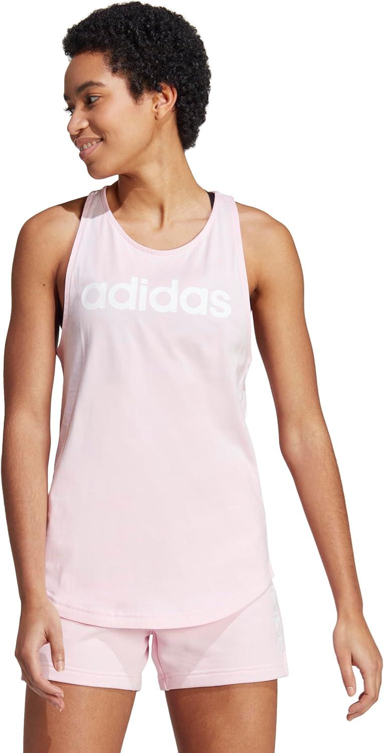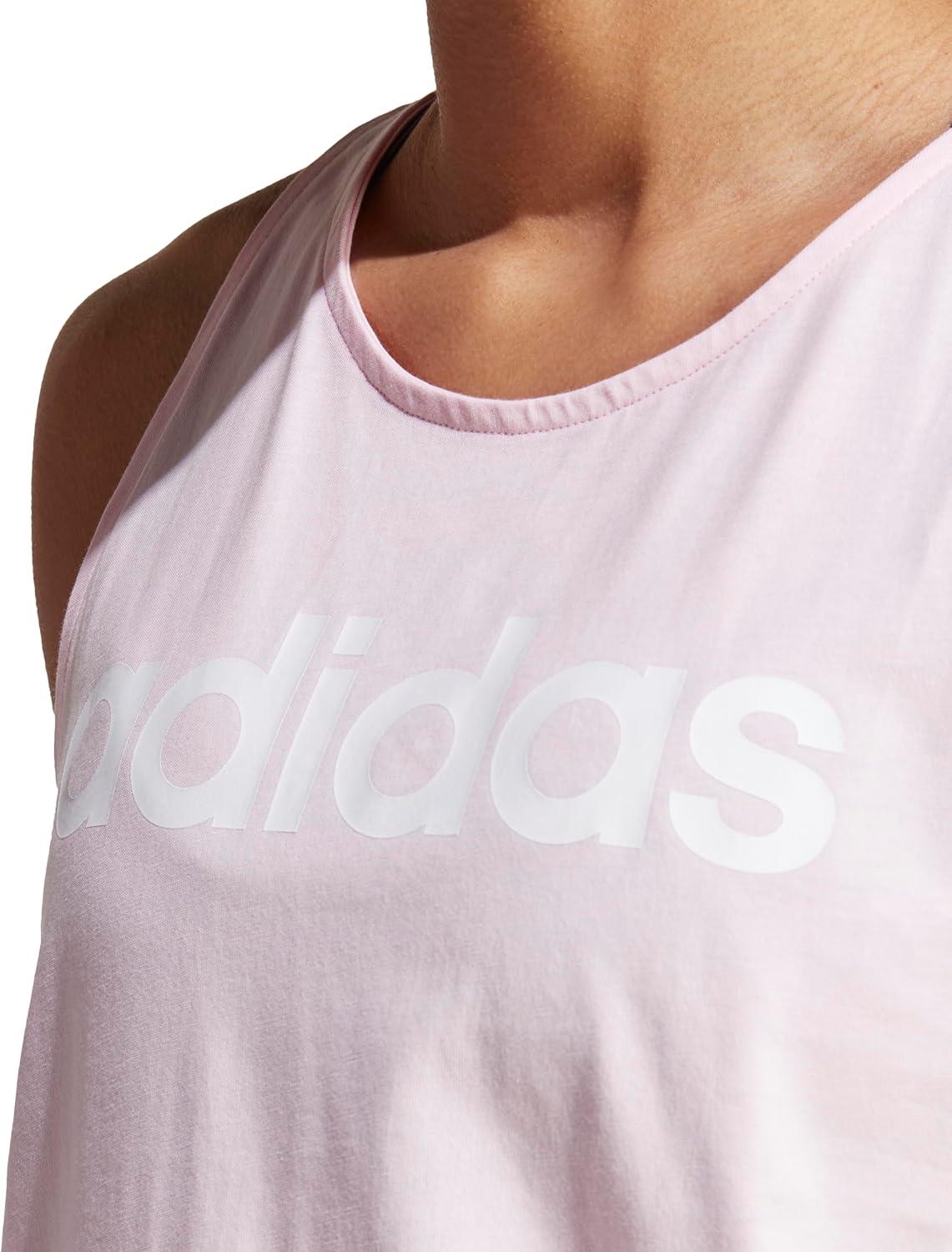 adidas Women’s Loungewear Essentials Loose Logo Tank Top(Clear Pink/White)