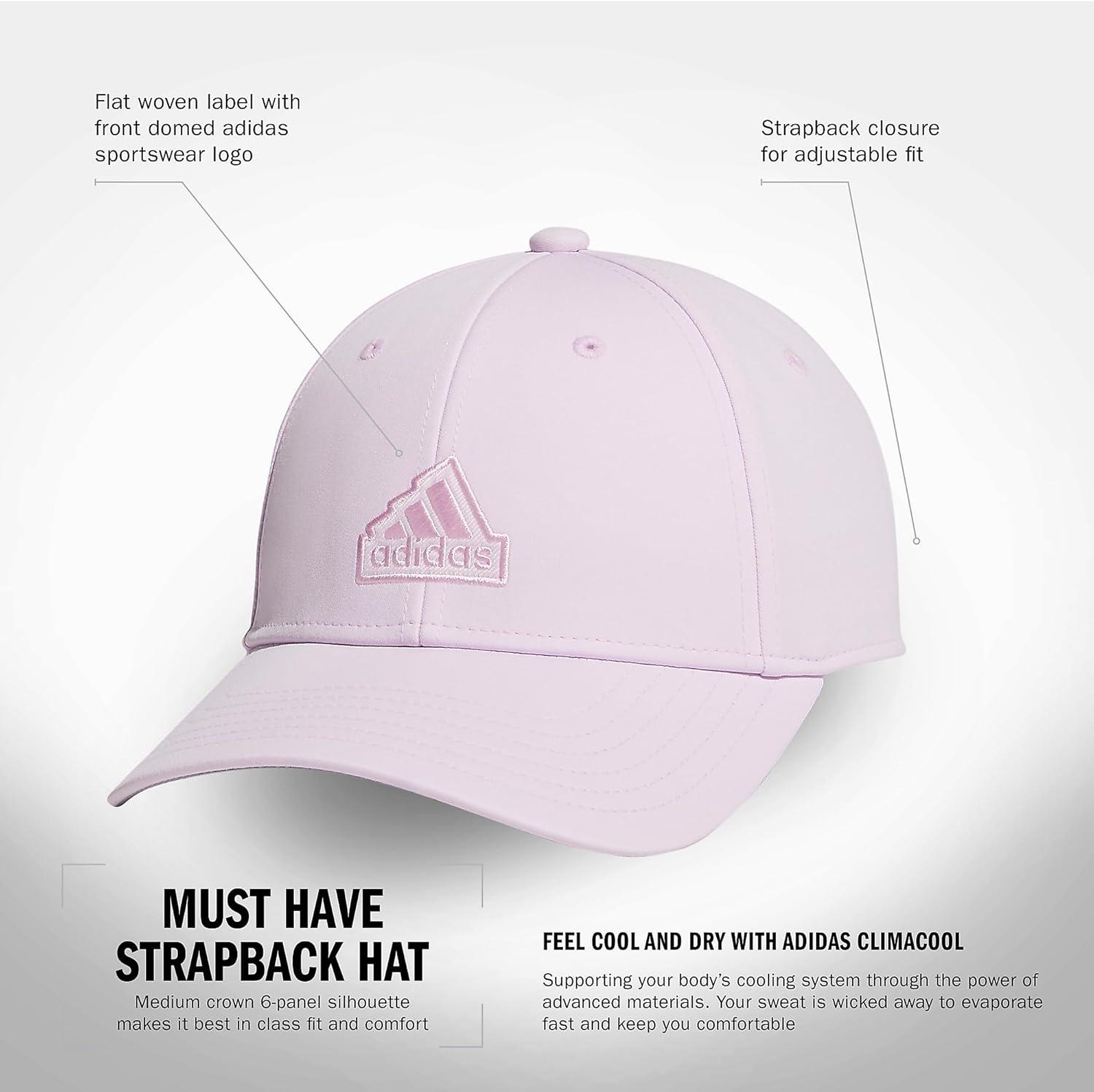 adidas Women’s Must Have Medium Crown Structured Adjustable Fit Strapback Hat(Ice Lavender/Grey/White)