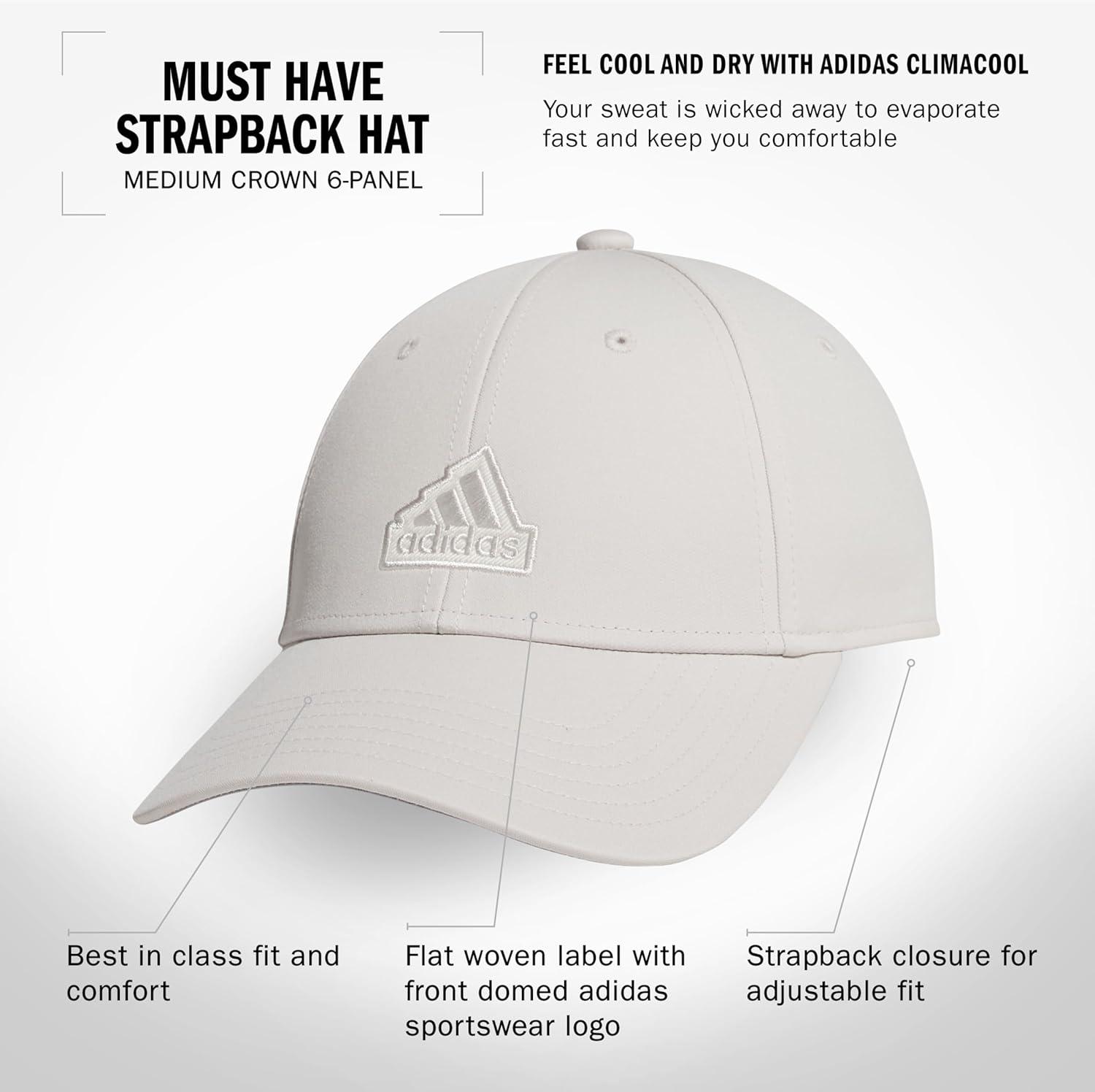 adidas Women’s Must Have Medium Crown Structured Adjustable Fit Strapback Hat(Wonder Alumina Grey/Grey/White)