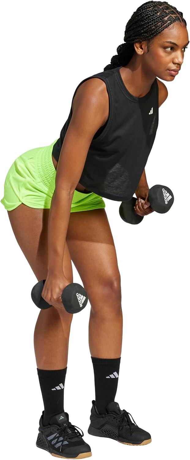 adidas Women’s Pacer Essentials Knit High-Rise Training Shorts(Lucid Lemon/White)