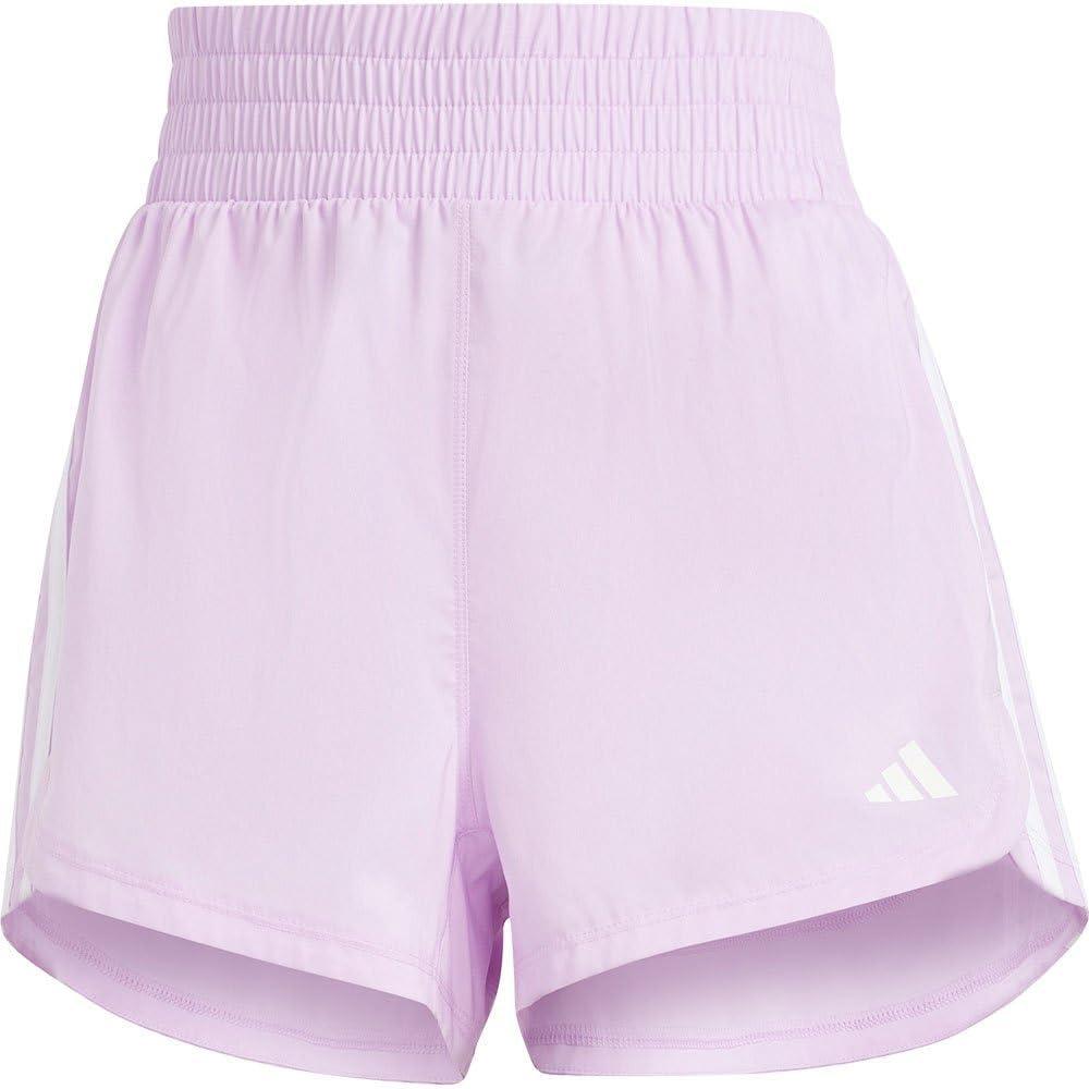 adidas Women’s Pacer Training 3-Stripes Woven High-Rise Shorts(Bliss Lilac/White)