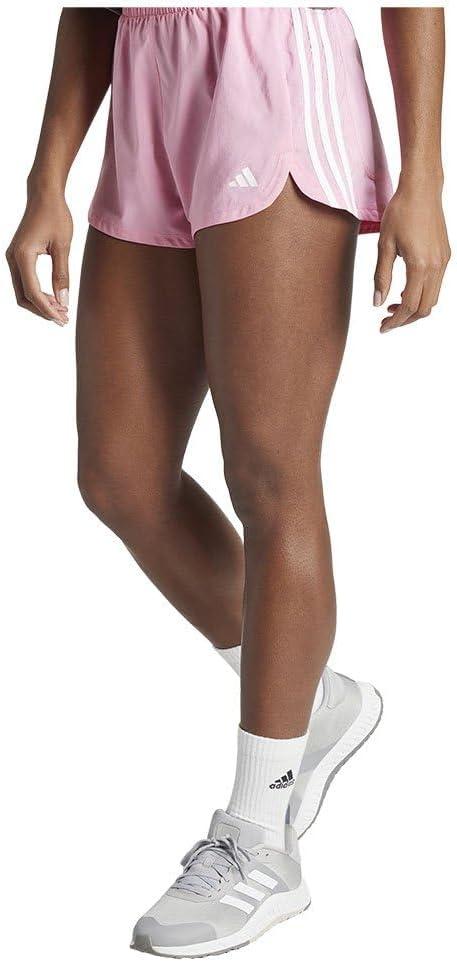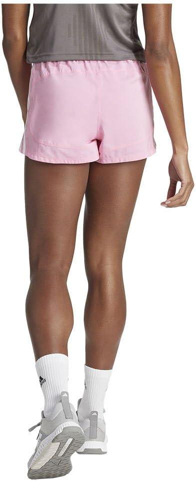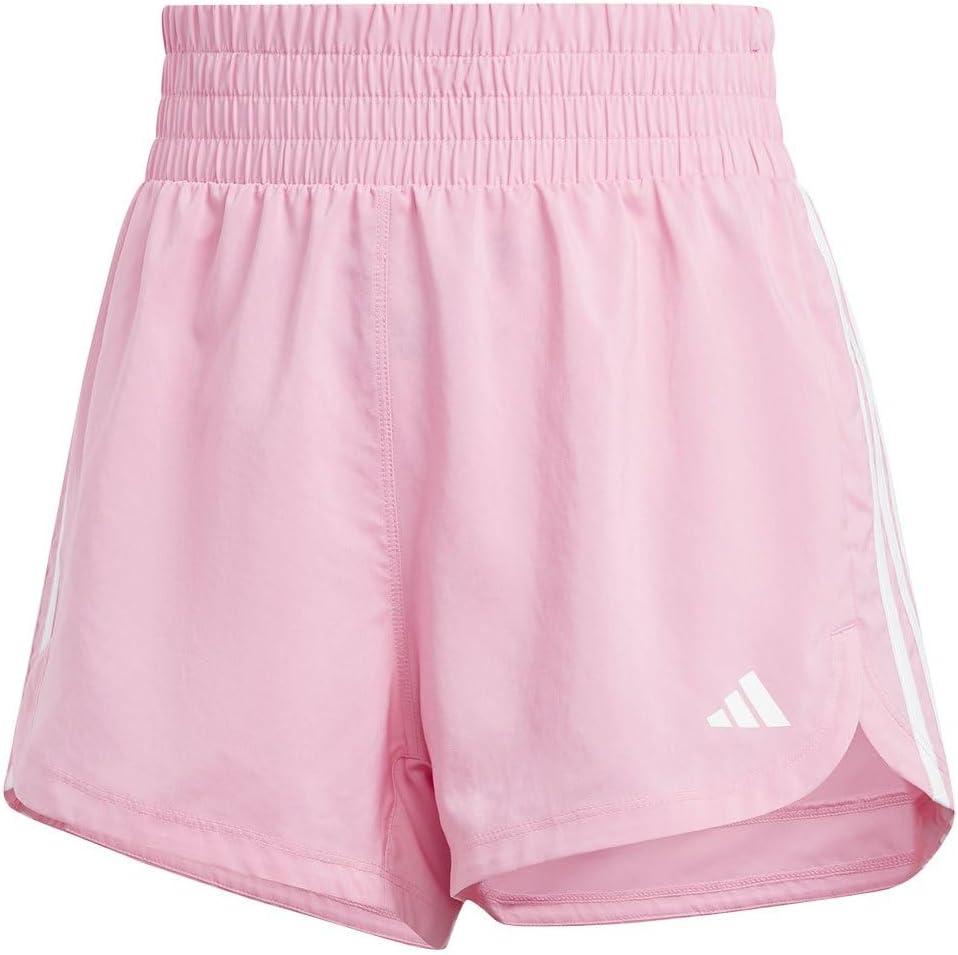 adidas Women’s Pacer Training 3-Stripes Woven High-Rise Shorts(Bliss Pink/White)