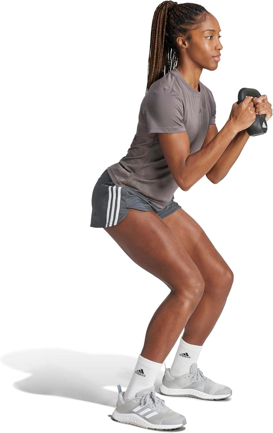 adidas Women’s Pacer Training 3-Stripes Woven High-Rise Shorts(Gresix/White)