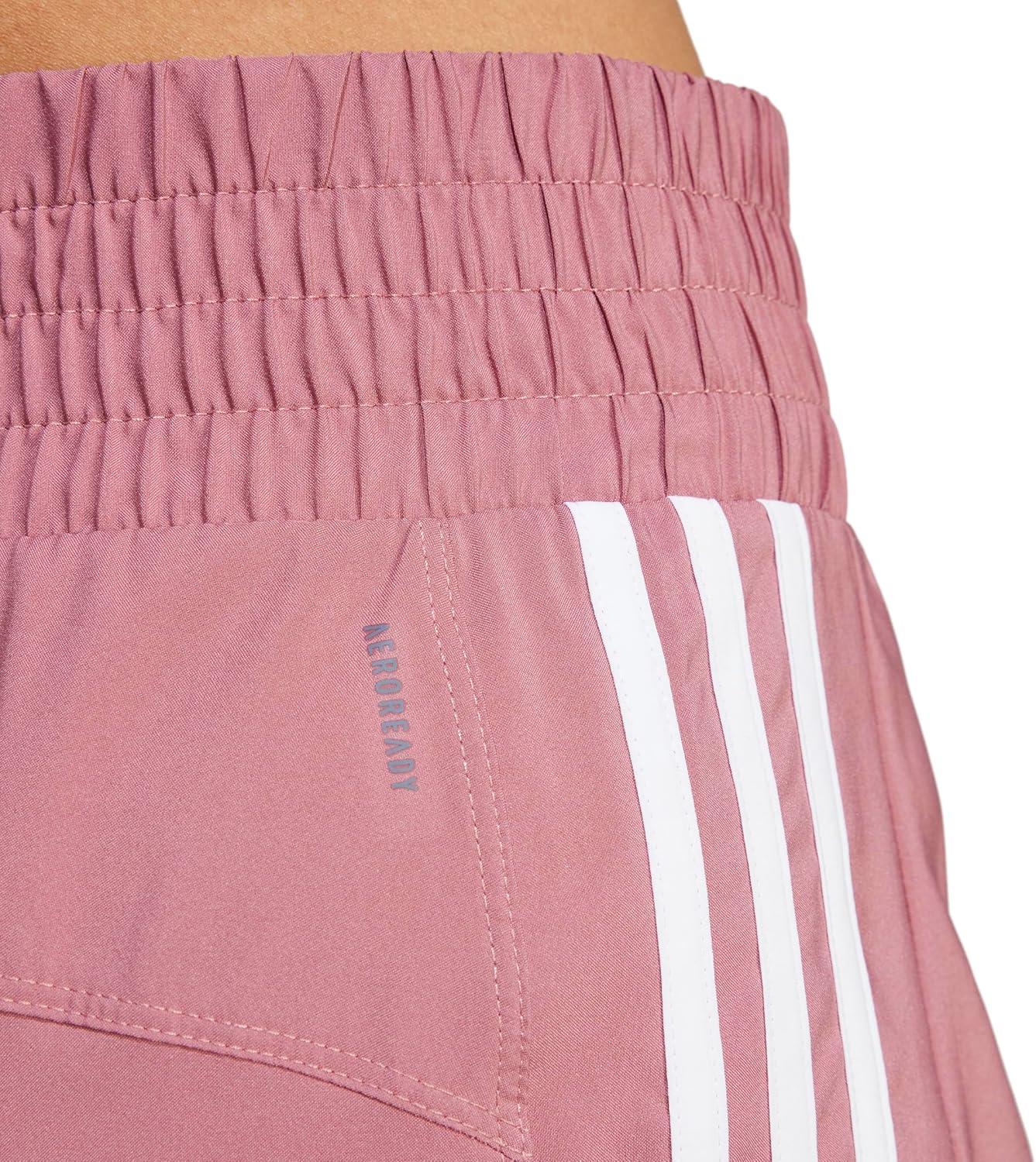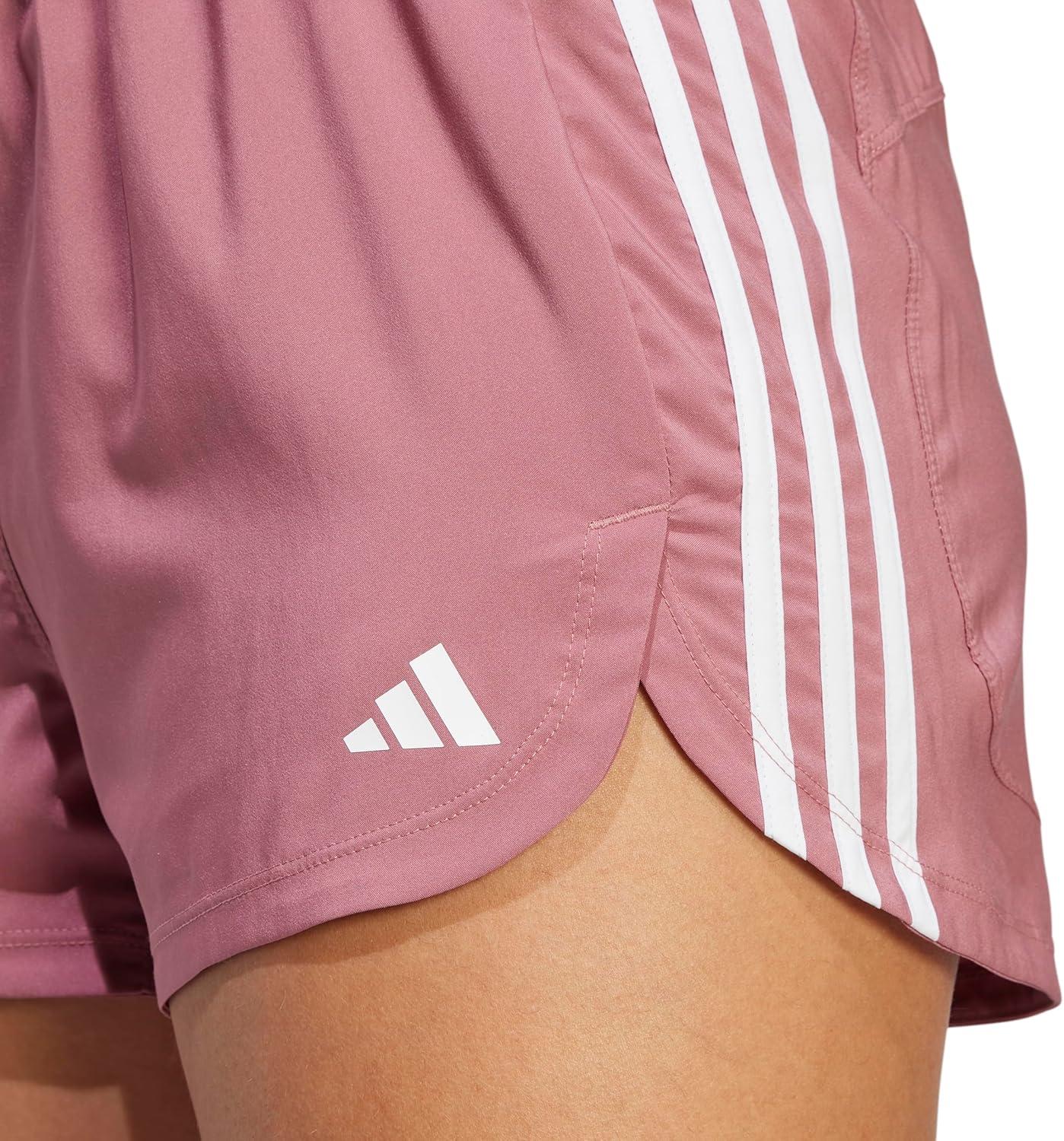 adidas Women’s Pacer Training 3-Stripes Woven High-Rise Shorts(Preloved Crimson/White)