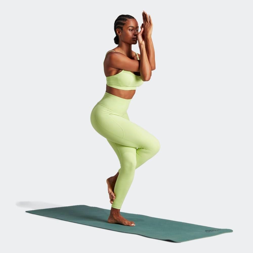 Bring a yoga mindset with you wherever you go. These women's adidas tights perform on or off the mat. The smooth fabric has a soft, barely there feel next to your skin, and the high-rise waist hugs you in and stays in place as you move. Moisture-absorbing AEROREADY keeps you dry when you start to build heat.