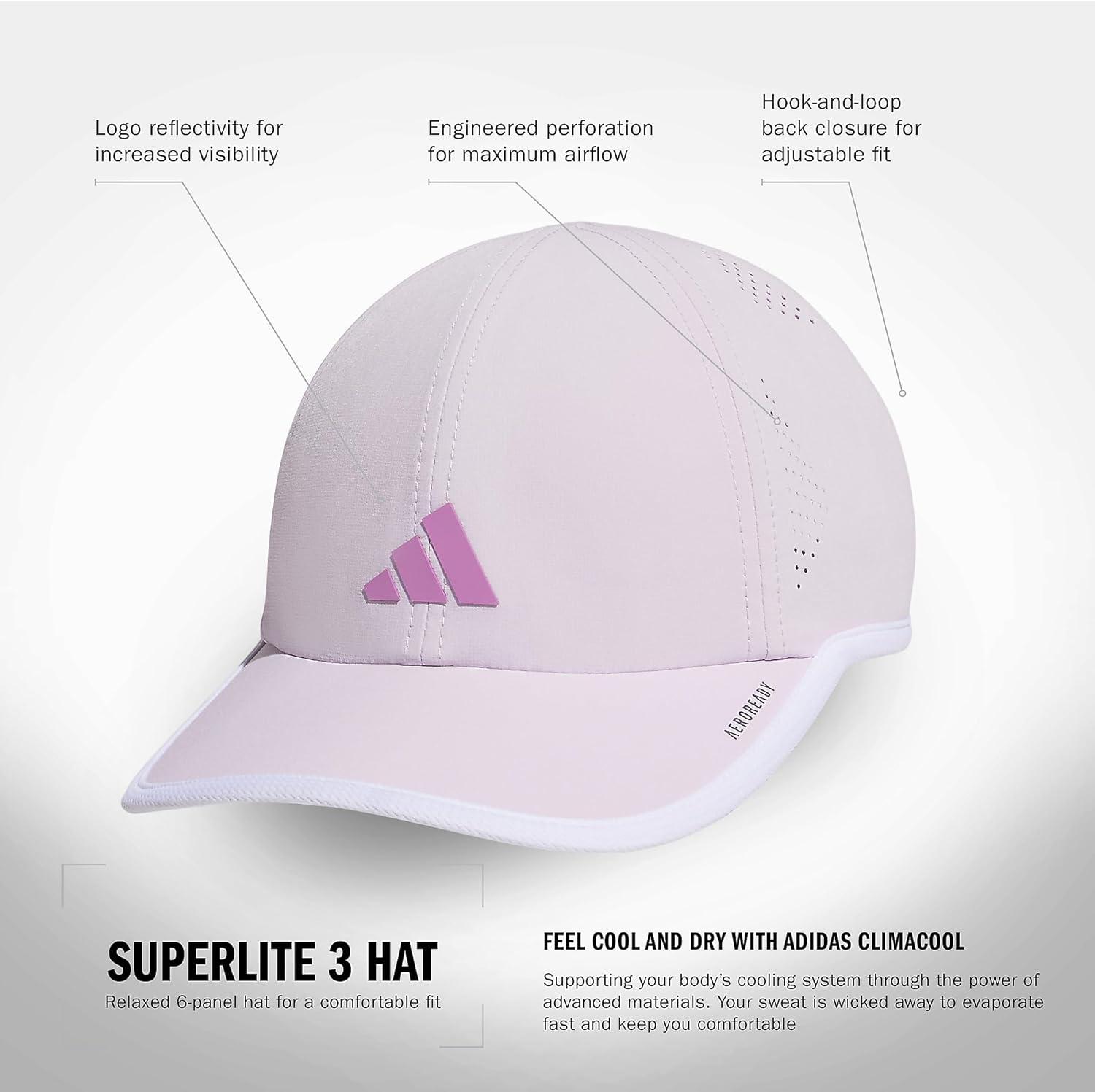 adidas Women’s Superlite Hat, Relaxed-fit Adjustable Workout Sports Cap(Ice Lavender/Preloved Purple/White/3.0)