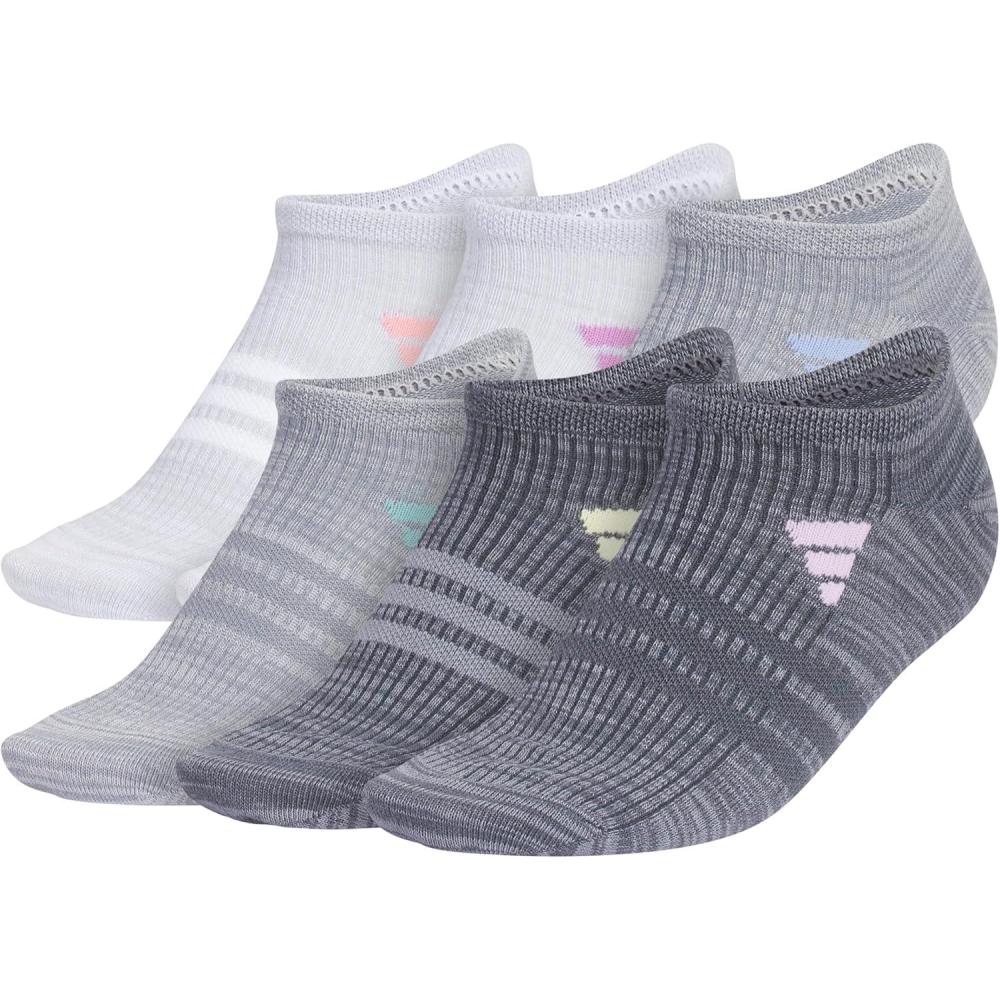 adidas womens Superlite No Show Socks (6-pair Pack) Low Profile Below Ankle(Clear Onix Grey/Semi Pink Spark/Preloved Purple)