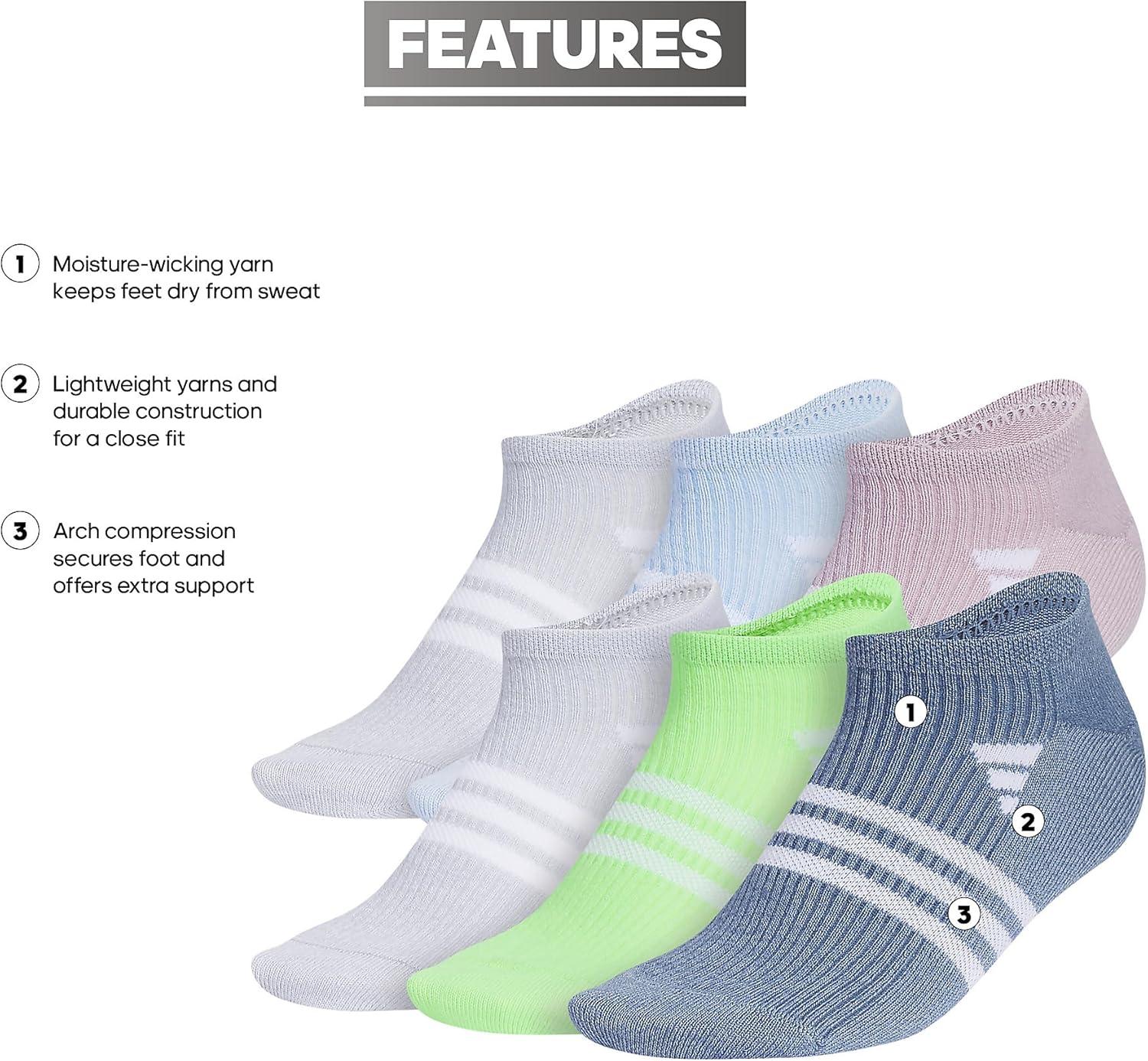 adidas womens Superlite No Show Socks (6-pair Pack) Low Profile Below Ankle(Preloved Fig Purple/Blue Dawn/Clear Onix Grey)