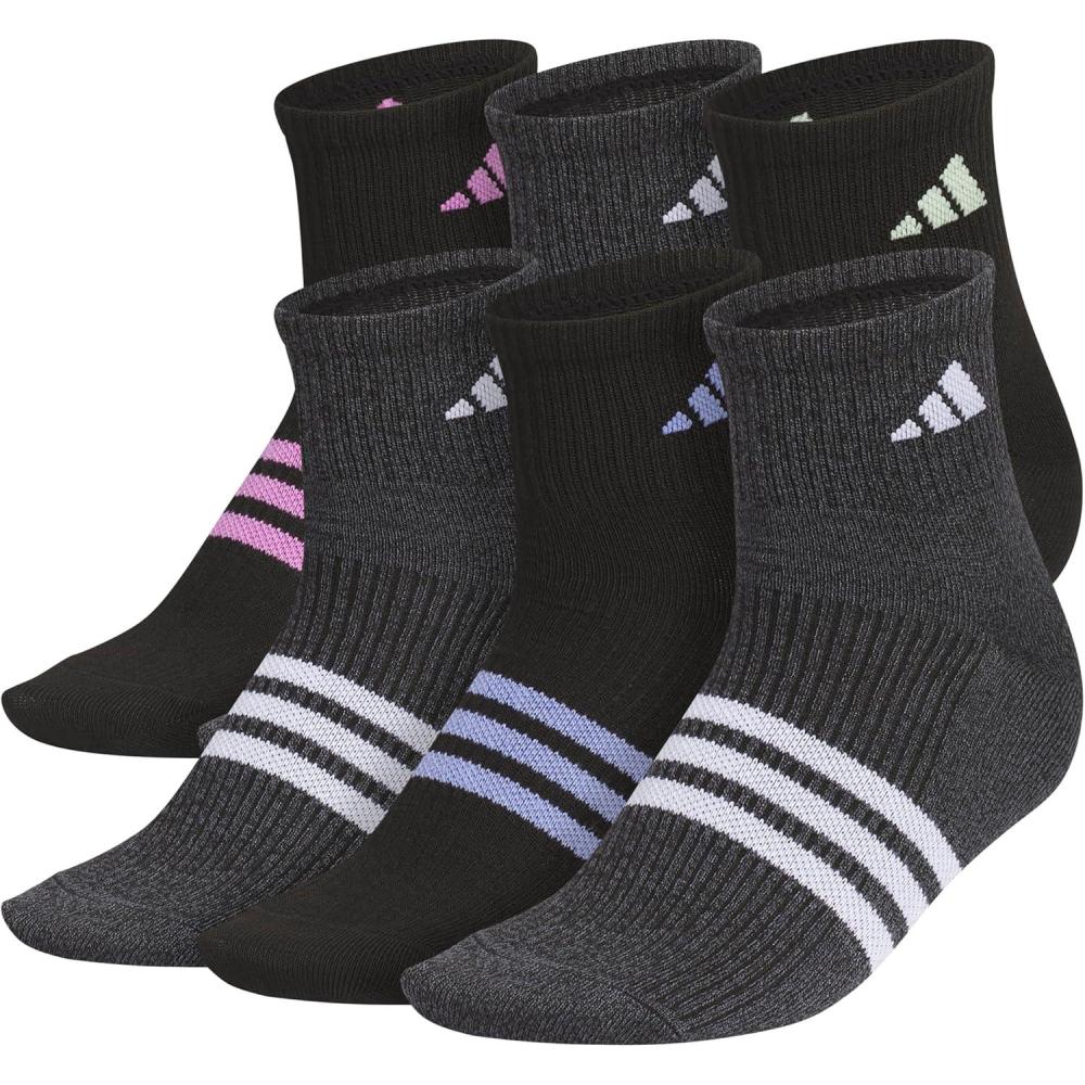 adidas womens Superlite Quarter Ankle Socks (6-pair Pack)(Black/Pulse Lilac Purple/White)