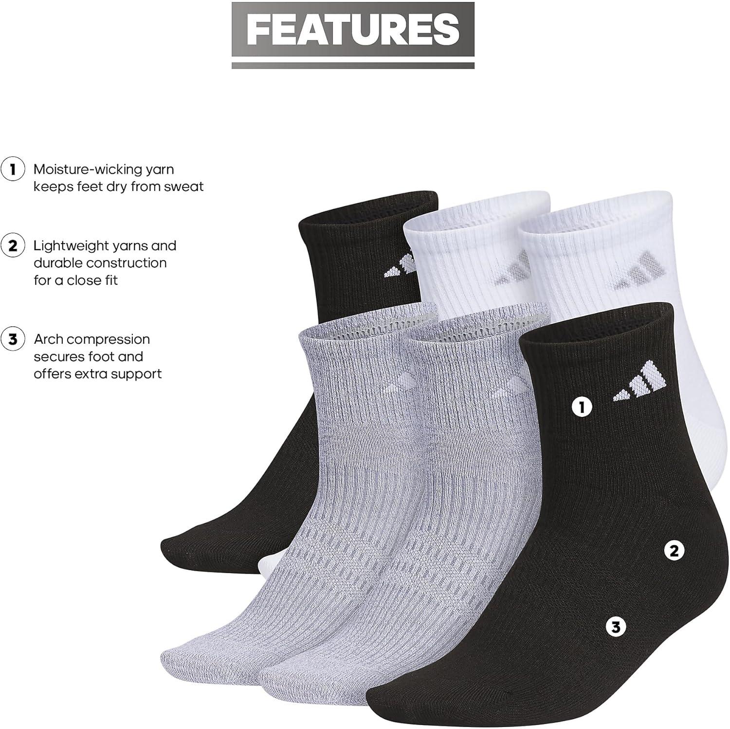 adidas womens Superlite Quarter Ankle Socks (6-pair Pack)(White/Black/Grey)