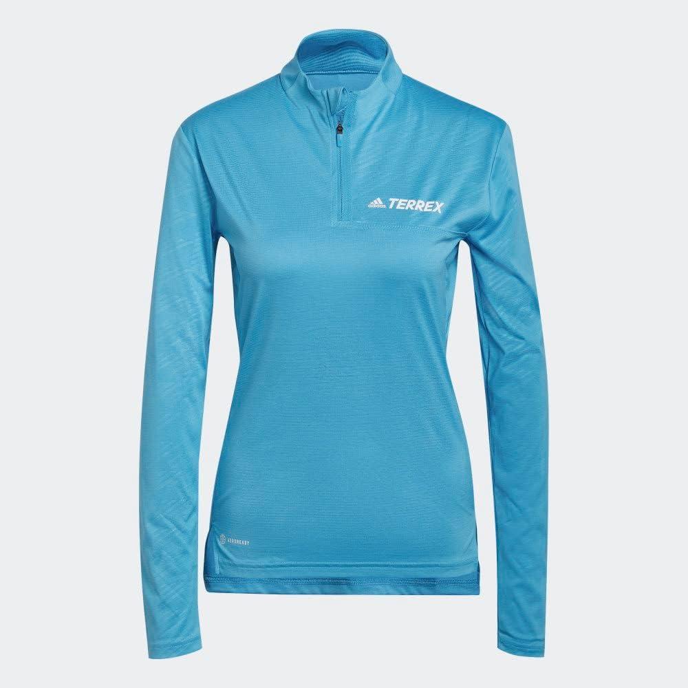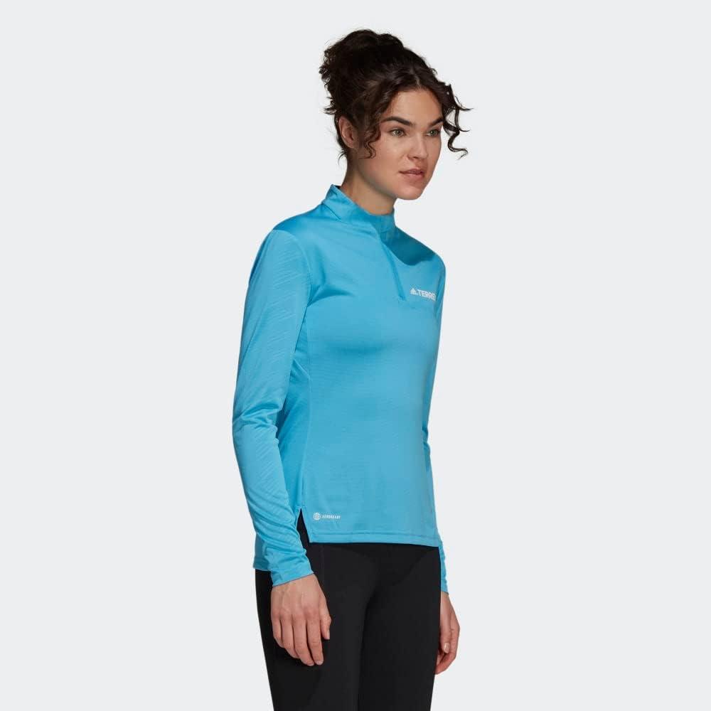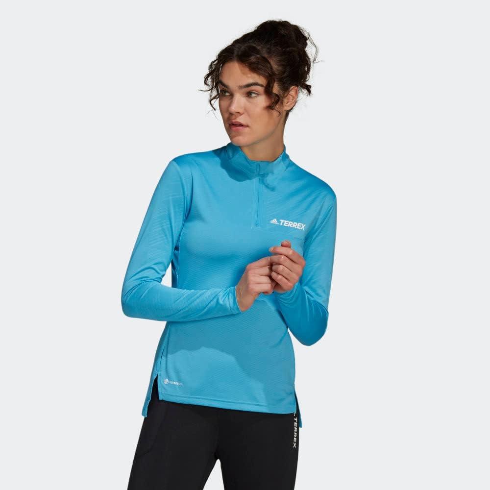 adidas Women’s Terrex Multi Half Zip Long-Sleeve T-Shirt(Sky Rush)