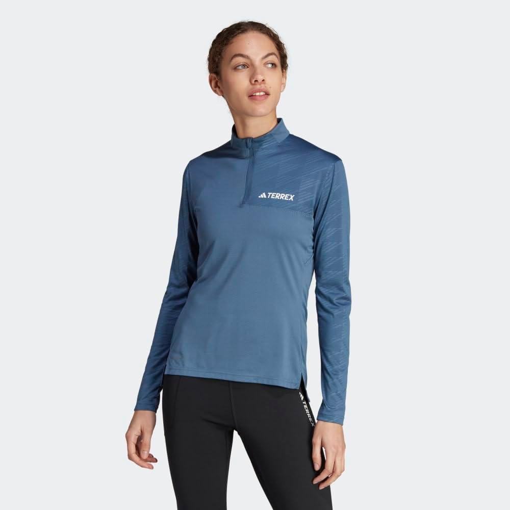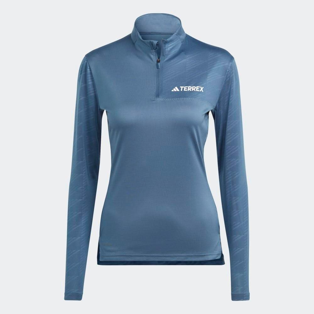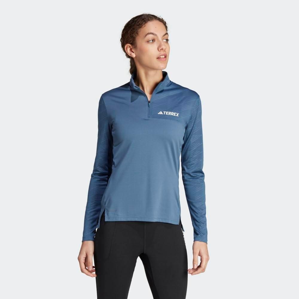 adidas Women’s Terrex Multi Half Zip Long-Sleeve T-Shirt(Wonder Steel)