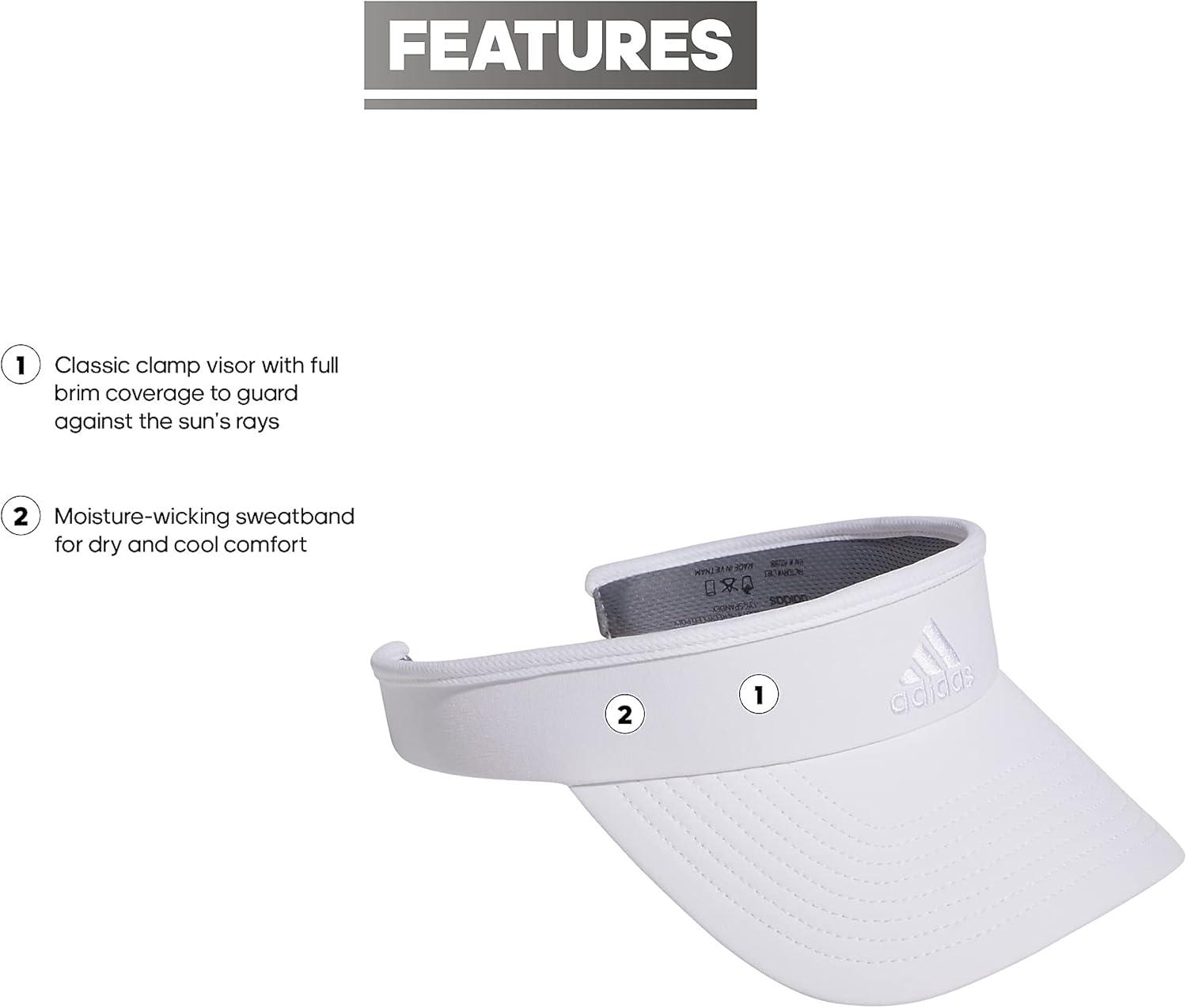 adidas Womens Visor – Match Athletic Clip-on Sun Hat for Sport & Training(White/White)