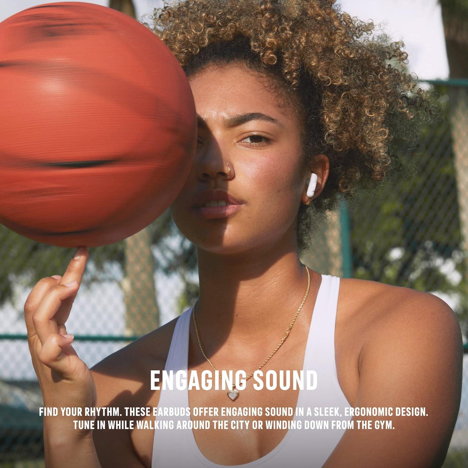 EASY FIT: The sleek earbuds stay in place as you train