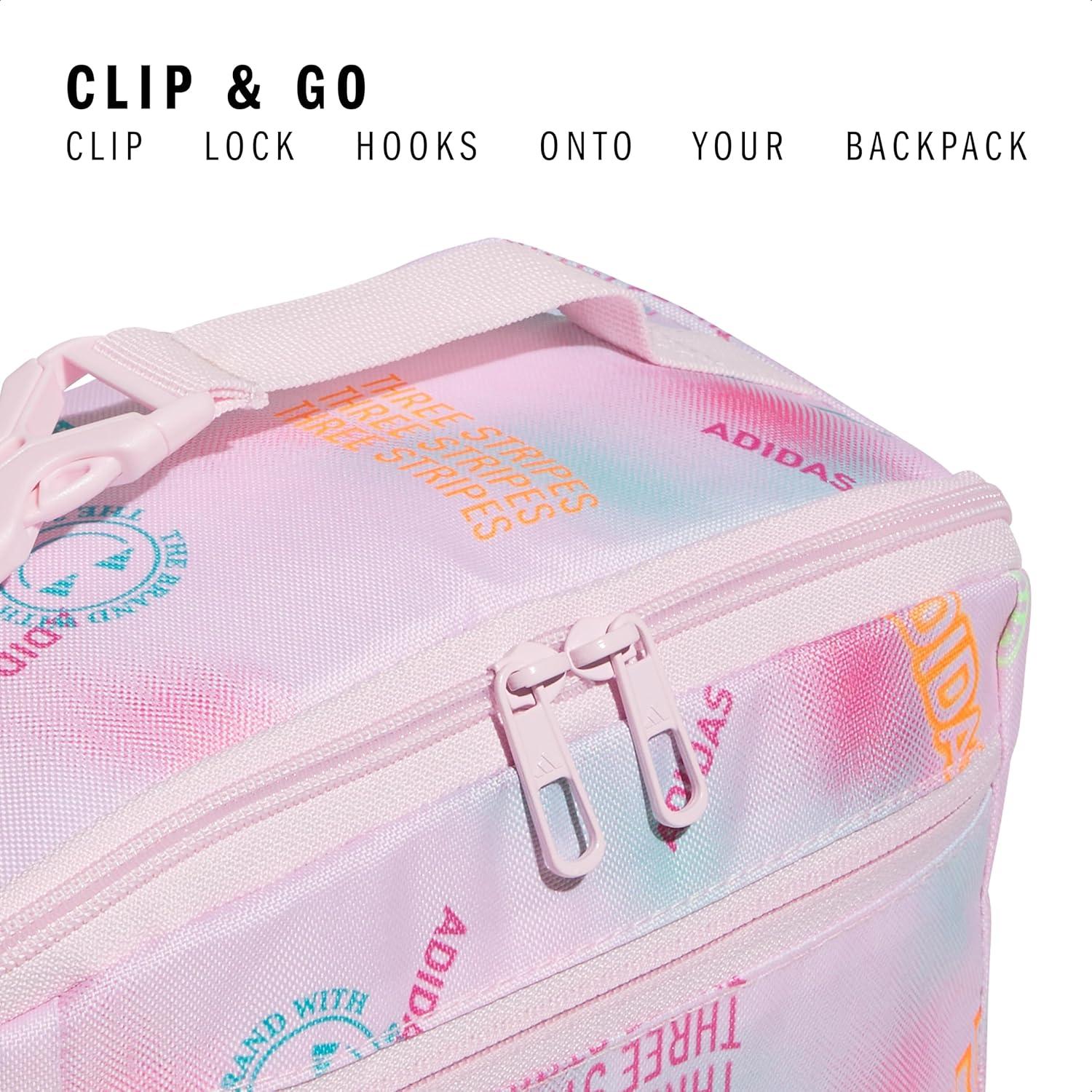 Bring your lunch with you when you're on the go. This adidas lunch bag is insulated for temperature control and has a mesh pocket inside that can hold small items. Use the clip lock on the handle to attach the bag to your backpack.