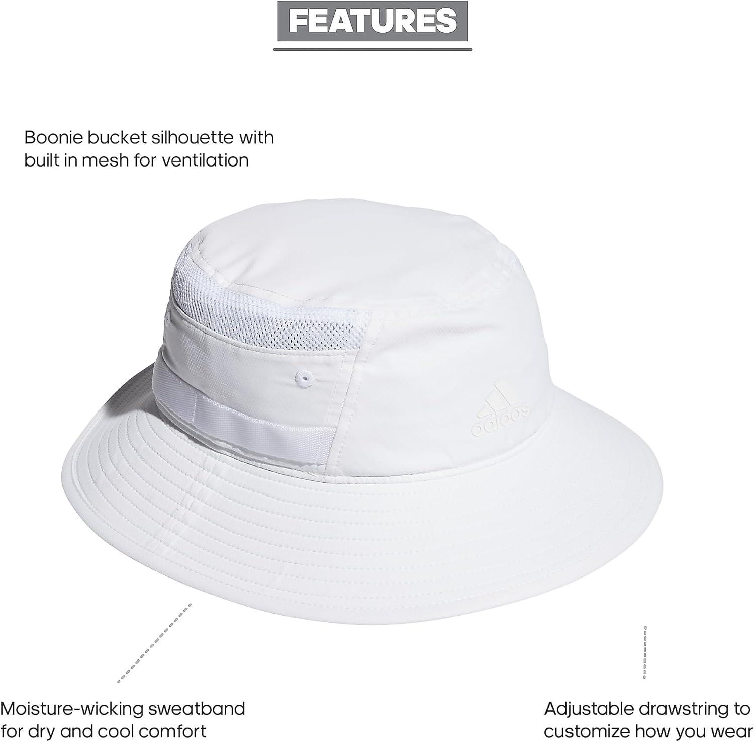 Keep covered on sunny days in this men's adidas bucket hat. Engineered perforations keep the air flowing to help you stay cool and dry. An adjustable chin strap lets you personalize the fit.